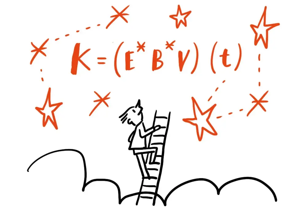 Dabei steht K für die Komplexität eines Systems, E für die Anzahl der relevanten Elemente, B für deren Beziehungen und V für das Verhalten dieser Beziehungen im Zeitverlauf. Das kleine (t) erinnert daran, dass Komplexität nicht statisch ist – ihre Bedeutung entsteht im zeitlichen Verlauf: in Entwicklungen, in Überraschungen, in Brüchen, in Veränderungen.