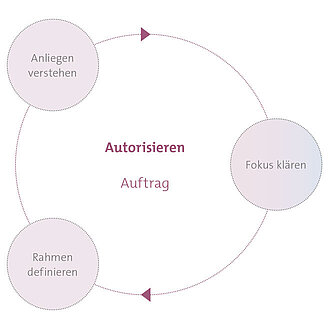Bevor es mit der eigentlichen Arbeit losgeht, dient die erste Phase "Autorisieren" ausschließlich der Bestimmung und Vergewisserung, woran gearbeitet werden soll und in welcher Form das zu geschehen hat.