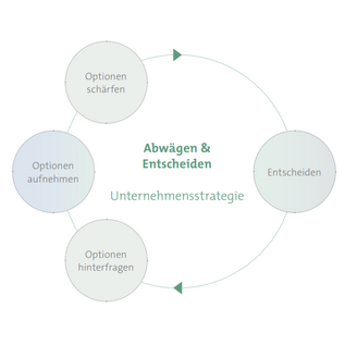 Ist die Ausgangslage hinreichend klar und verstanden, gilt es Optionen zu bilden und zu entscheiden – eine riskante Angelegenheit! Wie soll das Geschäftsmodell der Zukunft aussehen? Welchen Kurs soll das Unternehmen nehmen?