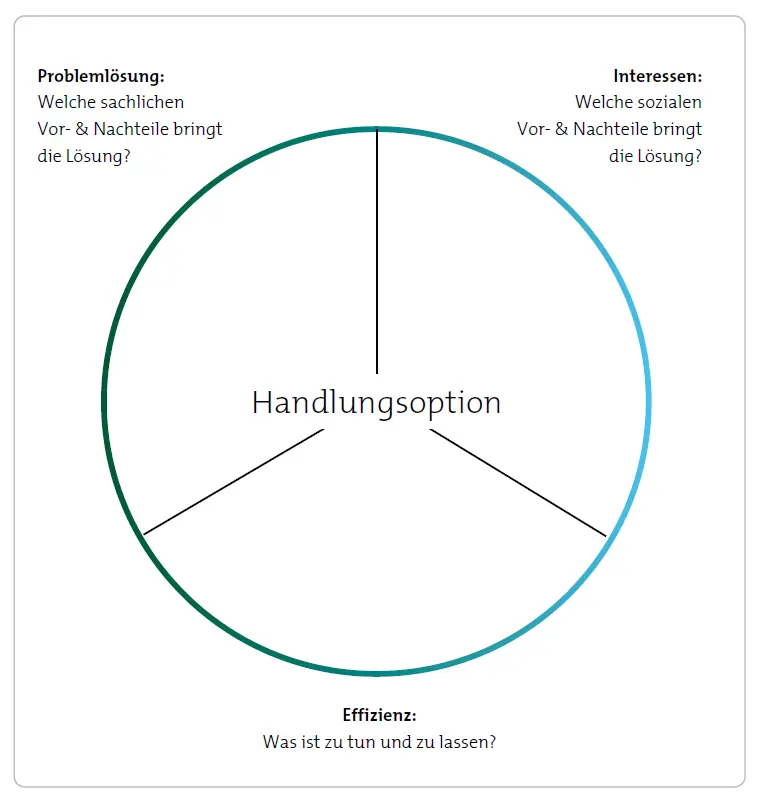 - Interessen (Sozialdimension): Wie gut deckt die Option die Interessen der Stakeholder ab?