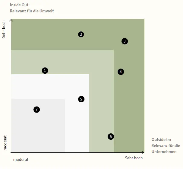 Das in diesem Kapitel dargestellte Vorgehen ähnelt der im Rahmen der Nachhaltigkeitsberichterstattung bedeutsamen Wesentlichkeitsanalyse. Sie wird in Standards und regulatorischen Rahmenwerken zur Nachhaltigkeit, wie der Corporate Sustainability Reporting Directive (CSRD) gefordert.