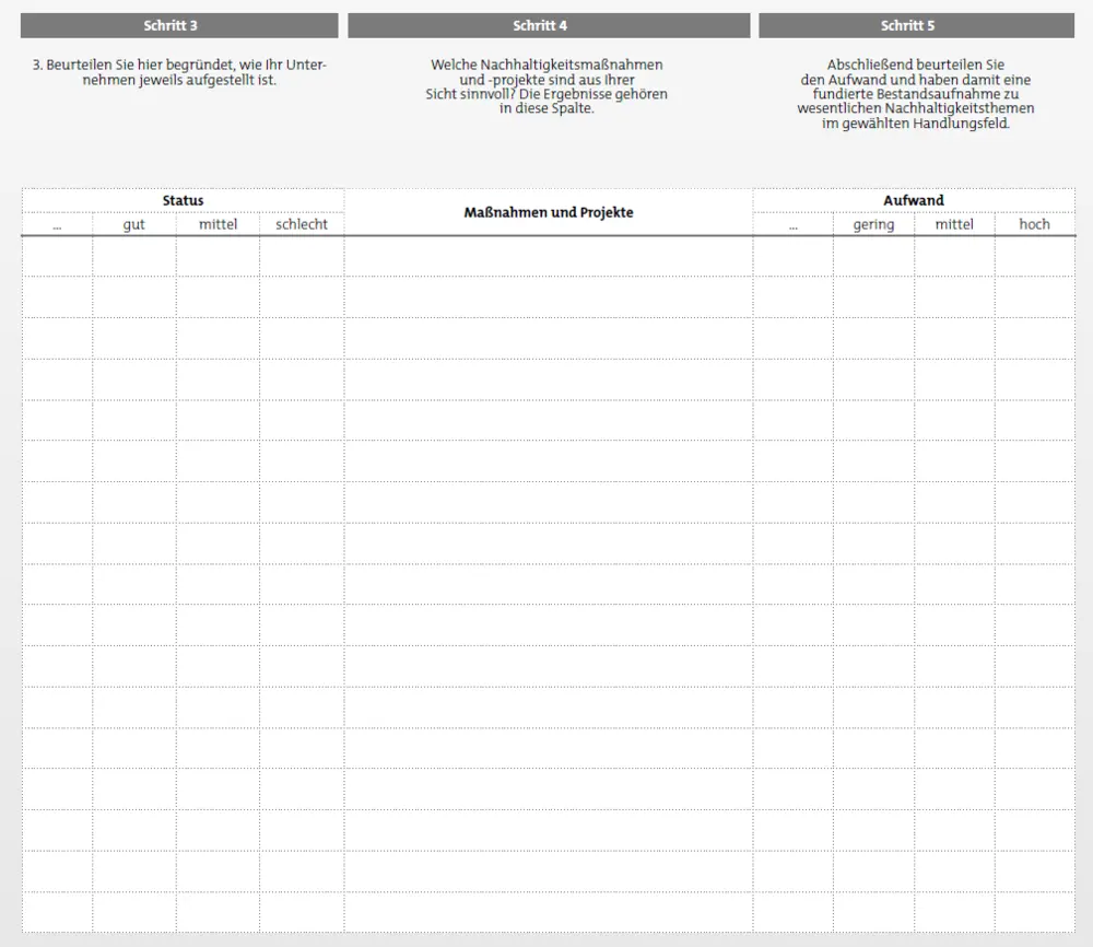 Auf dem „Moderationsplakat Schritt 3 – Wesentlichkeitsanalyse“ übernehmen Sie die Handlungsfelder, die Sie weiterbearbeiten wollen. Nutzen Sie bei Ihrer Arbeit wiederum die folgende Grafik als Orientierungshilfe.